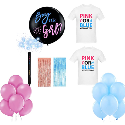 Organizeaza o petrecere gender reveal spectaculoasa cu acest set complet, perfect pentru a transforma momentul dezvaluirii intr-o amintire de neuitat! Setul include un balon mare gender reveal, care va aduce suspansul mult asteptat, alaturi de doua perdele decorative roz si blue, ce vor crea un decor magic si plin de emotie. In plus, cele doua artificii cu scanteie albastra vor adauga un efect special, iluminand momentul in care anuntati vestea cea mare! Pentru ca viitorii parinti sa fie in centrul atentiei, setul include si un set de tricouri gender reveal personalizate, care completeaza perfect atmosfera acestui eveniment special. Un pachet ideal pentru a sarbatori in stil mare si pentru a surprinde familia si prietenii cu un anunt de neuitat!